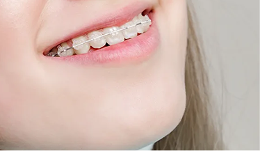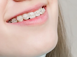 セラミックブラケット:歯の色に近い素材で、装置が目立ちにくいのが特長です。