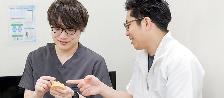 私達は、地域の患者様により良い治療をご提供できるよう、幅広く研鑽を重ねた複数名の歯科医師と、専門知識をもつ歯科衛生士、歯科助手がひとつのチームとなって患者様のお口の健康をサポートいたします。